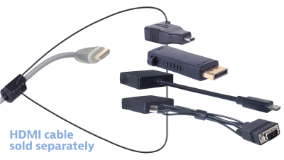Don't be a loser - Eliminate your company's panic & expense when presentation adapters go missing or get lost! Liberty AV Solutions patented tensile aircraft strength ring & clamp locks on the HDMI cable going to your display keeping any adapter you may need is at your fingertips. Not only do you get a solid and reliable connection, but the adapters are guaranteed to stay locked to the HDMI cable so they won't get lost for the next presentation!