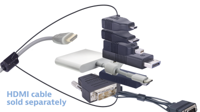 - - VGA + USB "A" 8" Cable Adapter , DisplayPort Adapter , DVI-D Adapter , Mini "C" HDMI Adapter , Micro "D" HDMI Adapter , Mini DisplayPort Adapter , USB "C" 4K Adapter* , Apple USB "C" Apple 4" Cable Adapter*