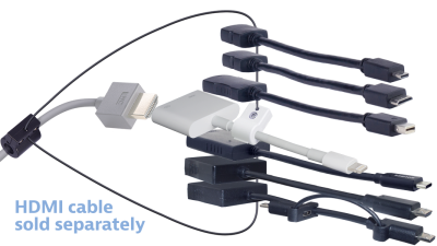 Don't be a loser - Eliminate your company's panic & expense when presentation adapters go missing or get lost! Liberty AV Solutions patent-pending tensile aircraft strength ring & clamp locks on the HDMI cable going to your display keeping any adapter you may need is at your fingertips. Not only do you get a solid and reliable connection, but the adapters are guaranteed to stay locked to the HDMI cable so they won't get lost for the next presentation!