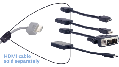 * 1 Adapter Cable Mini-DisplayPort male to HDMI female 5 inches long (AR-MDPM-HDF) * 1 Adapter Cable Mini-HDMI "C" male to HDMI female 5 inches long (AR-MCHM-HDF) * 1 Adapter Cable DVI male to HDMI female 5 inches long (AR-DVM-HDF) * 1 Adapter Cable USB "C" male to HDMI female 5 inches long (AR-UCM-HDF) * 1 Base security clamp, cable and hardware for DL-AR system (DL-CL)