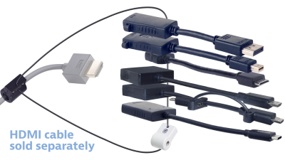 Don't be a loser - Eliminate your company's panic & expense when presentation adapters go missing or get lost! Liberty AV Solutions patent-pending tensile aircraft strength ring & clamp locks on the HDMI cable going to your display keeping any adapter you may need is at your fingertips. Not only do you get a solid and reliable connection, but the adapters are guaranteed to stay locked to the HDMI cable so they won't get lost for the next presentation!