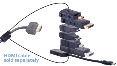 * 1 Interseries adapter micro HDMI "D" male to HDMI "A" female (ARMDHD) * 1 Interseries adapter Full sized DisplayPort male to HDMI female (ARDPHD) * 1 Interseries adapter mini HDMI "C" male to HDMI "A" female (ARMCHD) * 1 Interseries adapter Mini-DisplayPort male to HDMI female (ARMDPHD) * 1 4K DisplayPort to HDMI Adapter (ARDP4KHF) * 1 4K Mini DisplayPort to HDMI Adapter (ARMDP4KHF) * 1 Adapter Cable USB "C" male to HDMI female 5 inches long (AR-UCM-HDF) * 1 Base security clamp, cable and hardware for DL-AR system (DL-CL)