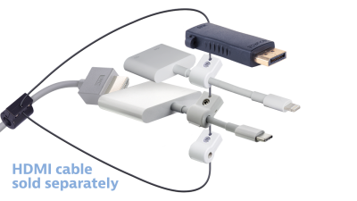 Don't be a loser - Eliminate your company's panic & expense when presentation adapters go missing or get lost! Liberty AV Solutions patent-pending tensile aircraft strength ring & clamp locks on the HDMI cable going to your display keeping any adapter you may need is at your fingertips. Not only do you get a solid and reliable connection, but the adapters are guaranteed to stay locked to the HDMI cable so they won't get lost for the next presentation!
