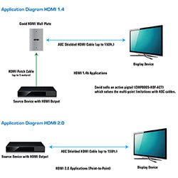 Versatility: This cable is not limited by point-to-point restrictions unless in HDMI 2.0 applications. Flexibility: The Covid AOC HDMI cable offers an extremely tight bend radius. In addition this cable is thin, light weight and much more flexible than traditional copper cables. Resolution: The AOC HDMI cable is the perfect choice for high resolution digital video applications. The cable supports resolutions up to 4K@60Hz at 150ft.