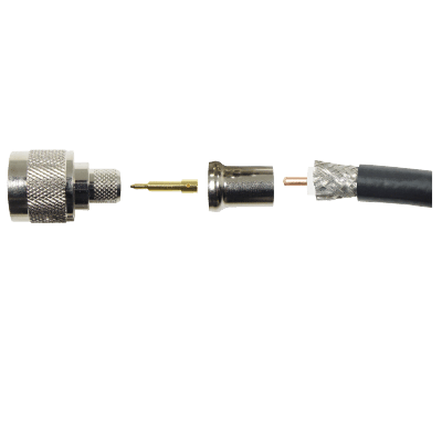 N Male Crimp Connector for use with Wilson 400 Cable or RG-8U Cable. To create equivalent cable components for cell phone signal booster kits.